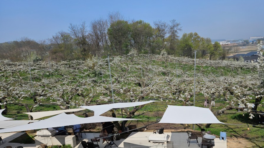 과수원을 개조하여 만든 카페로, 4월이면 하얀 배꽃이 눈이 내린 듯 만개한 풍경을 감상할 수 있습니다. 천안 각원사와 피나클랜드에서 차로 15~20분 거리이니, 각원사 방문 후 방문하면 좋을 것 같습니다.